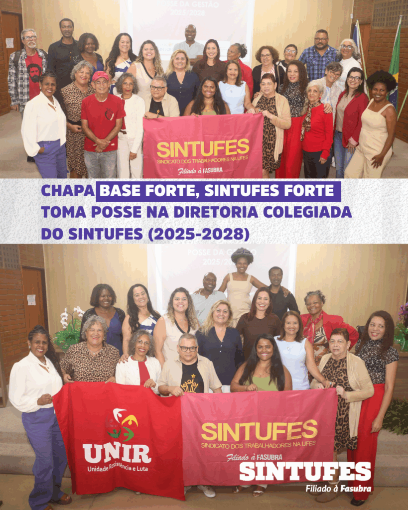 A chapa “Base Forte, Sintufes Forte” tomou posse para assumir a diretoria colegiada do Sindicato dos Trabalhadores na Universidade Federal do Espírito Santo (Sintufes) no triênio 2025-2028. A nova coordenação se comprometeu a se reaproximar da base da categoria e a fortalecer a luta pelo cumprimento do acordo de greve e contra a “deforma” administrativa.