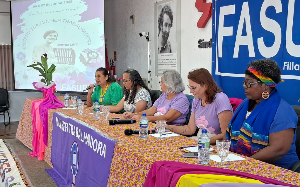 A atividade que homenageou Bertha Lutz, pioneira na luta pelos direitos das mulheres, reuniu mais de 100 mulheres trabalhadoras de 30 entidades sindicais ligadas às instituições federais de ensino para debater temas como: violência de gênero, economia do cuidado e a Convenção 190 da OIT, primeiro tratado a reconhecer formalmente o direito de todos a um mundo de trabalho livre de violência e assédio.