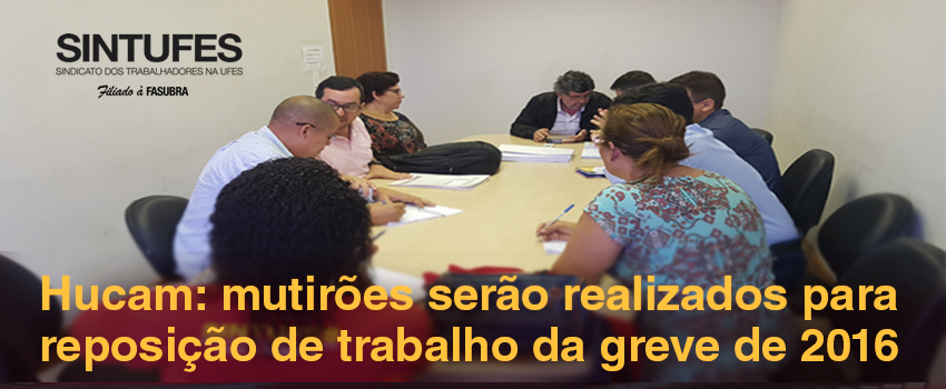 Em reunião realizada na manhã desta quarta-feira, 18, entre o Sintufes, o reitor da Ufes e o superintendente do Hucam, foram encaminhados pontos do acordo de greve de 2016 que dizem respeito à reposição do trabalho da categoria no Hucam.