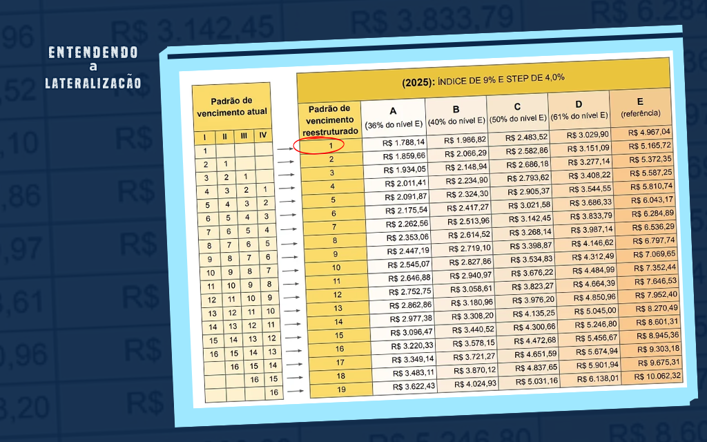 💸 Em vigor com retroatividade: De antemão, é importante lembrar que a medida provisória (MP) 1.286, de 31 de dezembro de 2024, prevê o reajuste salarial de 9% a partir de janeiro de 2025, assim com as mudanças na carreira, dentre elas a lateralização e a verticalização da tabela.