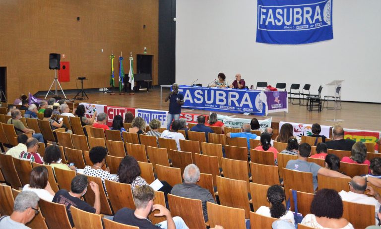 Neste sábado (16), a Plenária Nacional da Fasubra Sindical iniciou com a análise de conjuntura sobre a Reforma da Previdência, a defesa das Instituições Públicas de Ensino do Brasil, a defesa da democracia e a organização da luta contra os ataques do governo. O evento conta com cerca de 170 técnica-administrativas e técnico-administrativos em educação, entre delegados(as) e observadores(as). Hoje a plenária fez os encaminhamentos da pauta de reivindicações que sinalizam as ações prioritárias para a categoria para o próximo período.